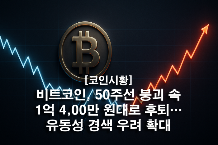 비트코인, 50주선 붕괴 속 1억 4,00만 원대로 후퇴··· 유동성 경색 우려 확대